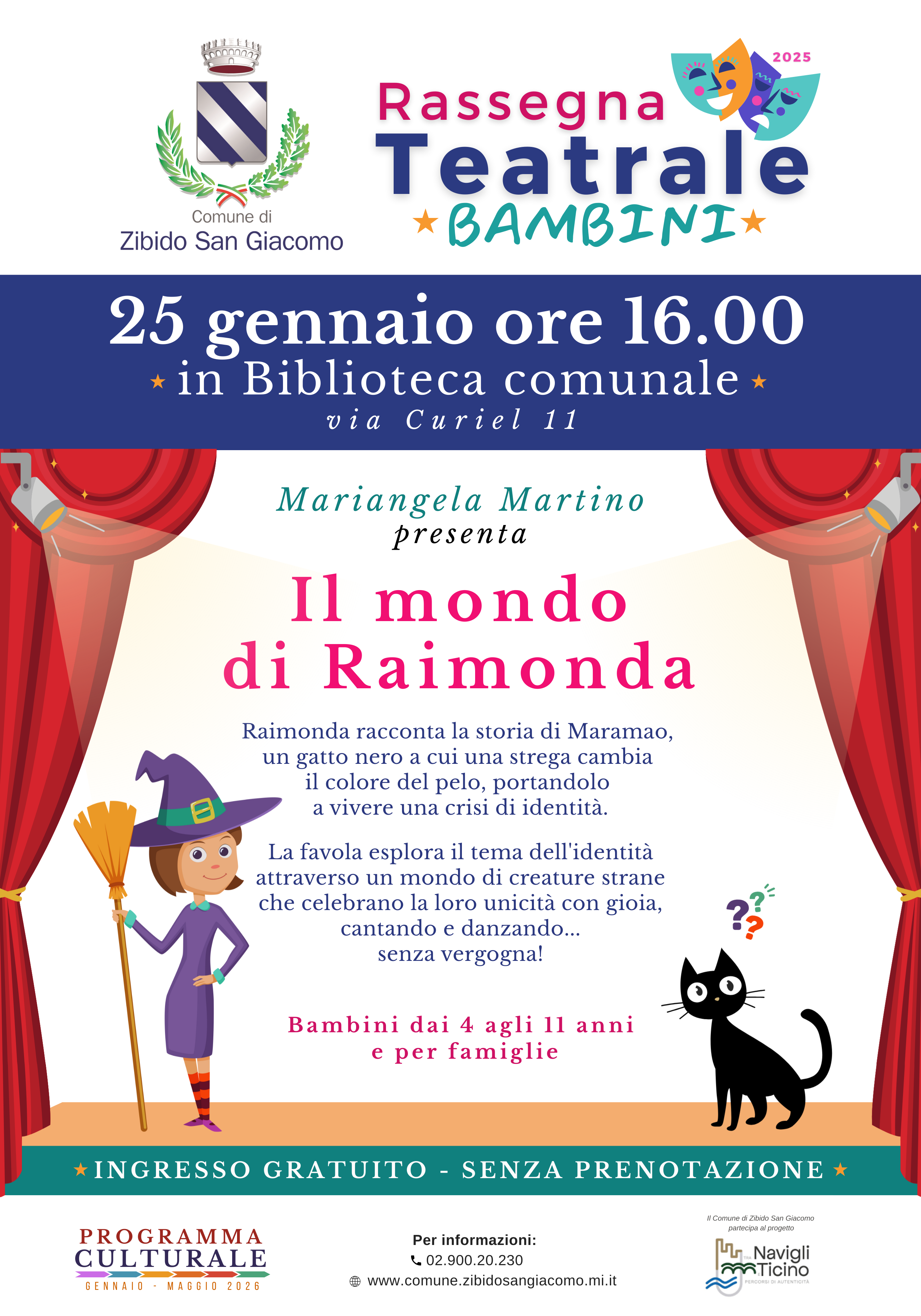 A partire dalle ore 16.00 presso la Biblioteca comunale di Zibido San Giacomo, Mariangela Martino vi aspetta con lo spettacolo per bambini, dai 4 agli 11 anni, " Il mondo di Raimonda"! Una favola che esplora il tema dell'identità attraverso un mondo di creature strane che celebrano la loro unicità con gioia, cantando e danzando... senza vergogna!